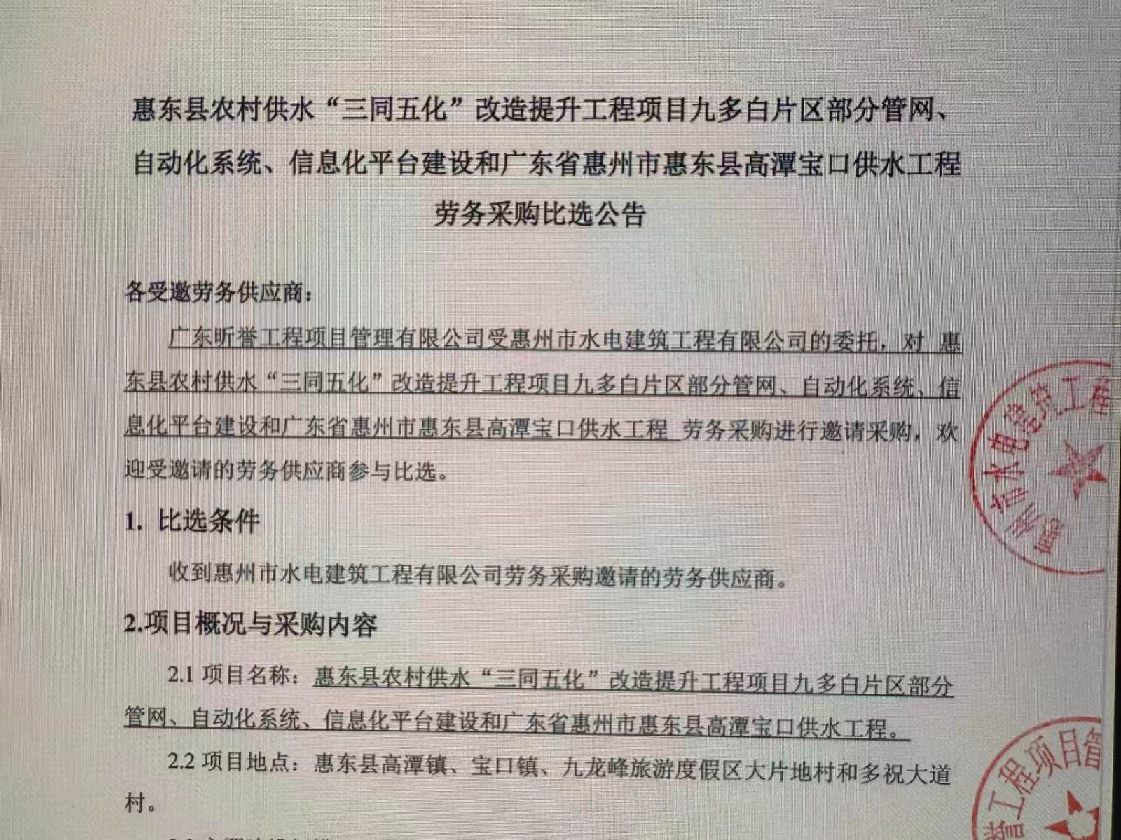 廣東省惠州市中心城區(qū)地下管網(wǎng)系統(tǒng)提升工程-內(nèi)街小巷排水管網(wǎng)病害修復(fù)及錯混接改造項(xiàng)目一期施工勞務(wù)采購比選公告……